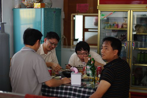 我在多數的照片中幾乎都在進食,正在吃,準備吃,已經吃等等。畫面右邊是社區的總幹事,是非常風趣的大叔,左邊是部落裡來幫忙的鍾先生,照顧我們很多。