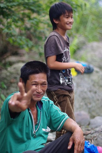 當地部落青年團的前會長劉會長,後面是他的小孩。年輕的時候一定是帥哥!